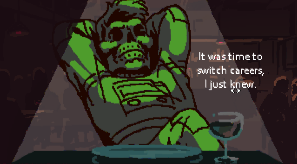Ik verwachtte dat Don’t Stare een vergelijkbare insteek zou hebben. De vormgeving en soundtrack van de game scheppen ook die verwachting. Wat pixels hier, een chille soundtrack daar. Maar wat ik kreeg was een tegengif. Don’t Stare zet het genre van de cozy game op z’n kop. Je krijgt geen tijd om na te denken. In plaats van begrip en duurzame relaties draait het alleen maar om eerste indrukken en afwijzingen. Eigenlijk is niemand echt aardig tegen elkaar. Zelfs de clubeigenaar is altijd nors. En zelf blijf je maar staren en afgewezen worden. Er zit niets anders op. En het gekke is: precies vanwege dit onophoudelijke ongemak is Don’t Stare bij uitstek een game voor antropologen. Sociale relaties zijn namelijk zo simpel nog niet.