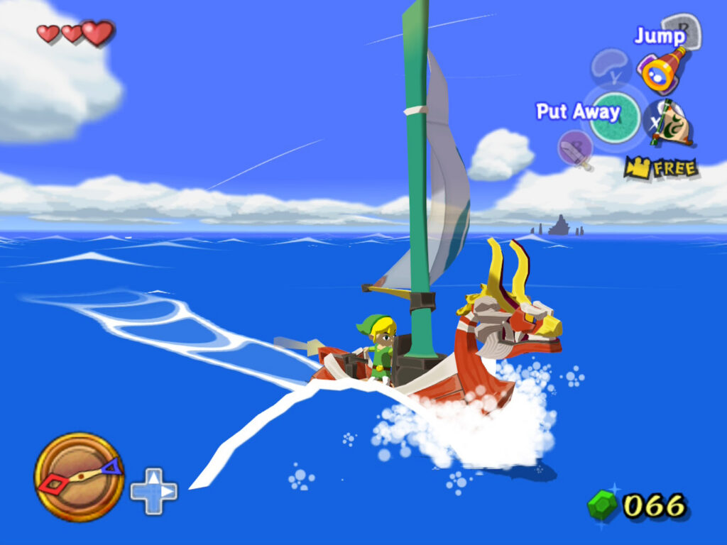 Voor de HD-remake die jaren later uitkwam op de Wii U werd dat aangepast en een quick sail toegevoegd: een manier om sneller door de wereld te sjezen. Niemand snapt dat die HD-versie (en die van Twilight Princess) nog steeds niet beschikbaar is op de Switch… Maar ondertussen ben ik extreem gelukkig dat we nu de oude, oorspronkelijke versie beschikbaar hebben.