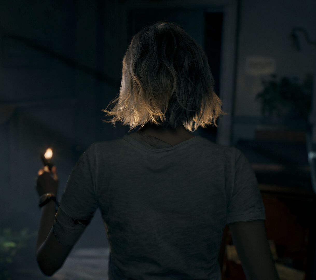 Len schrijft: “Bij Leon kijk je mee over zijn schouder. Hij is een actieheld, die nauwelijks reageert wanneer mensen bloederig voor zijn ogen vermoord worden; de speler kijkt gevoelsmatig vooral toe. Het is effectief, creëert afstand wanneer je van Grace naar Leon overstapt.” Helemaal mee eens, overigens. Het derdepersoonsperspectief zorgt inderdaad voor afstand, letterlijk én figuurlijk.